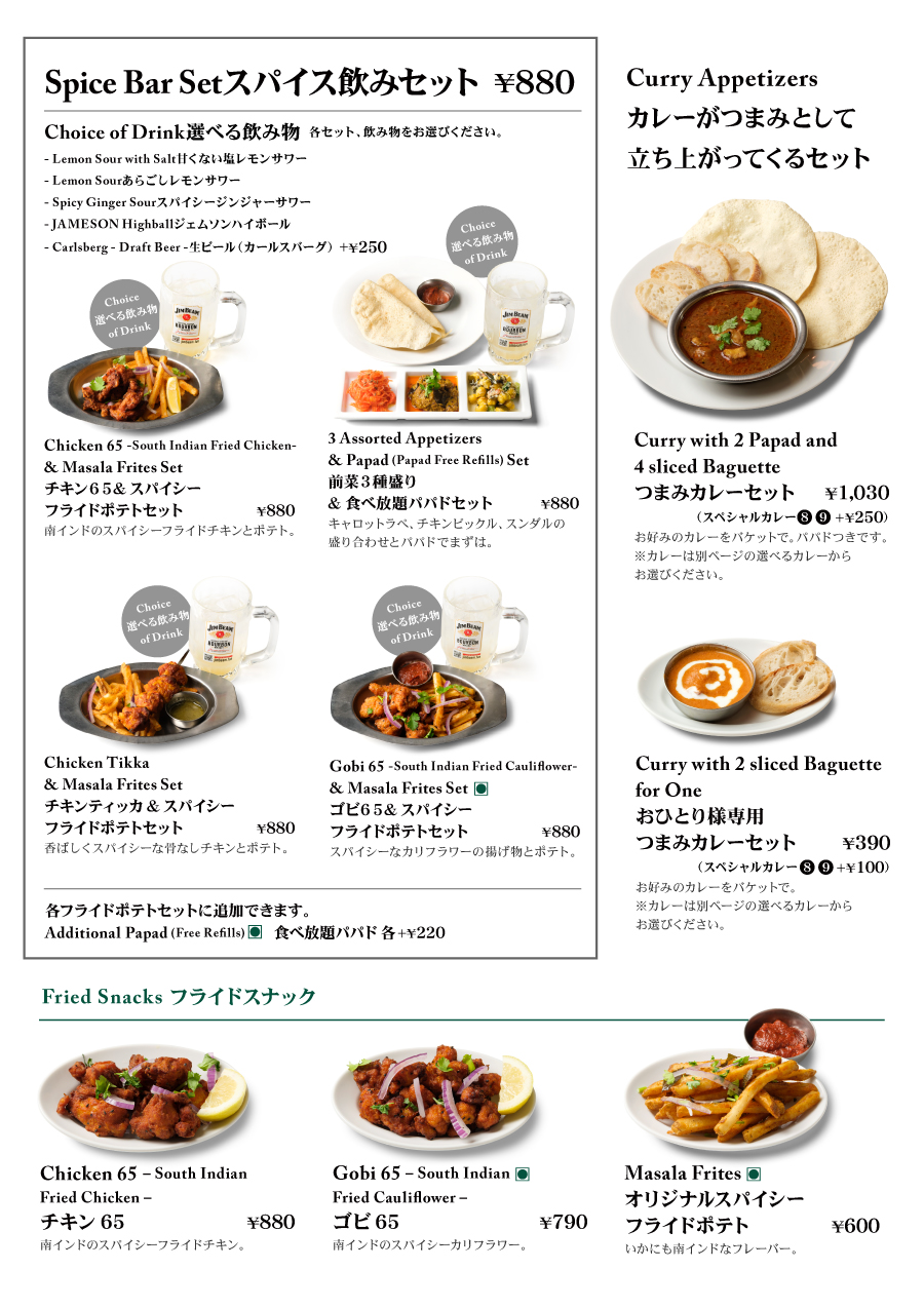 ゆっくり楽しんでいただくレストラン、はしご酒のひとつに加えていただくスパイスバル、さまざまなスタイルでお楽しみください。