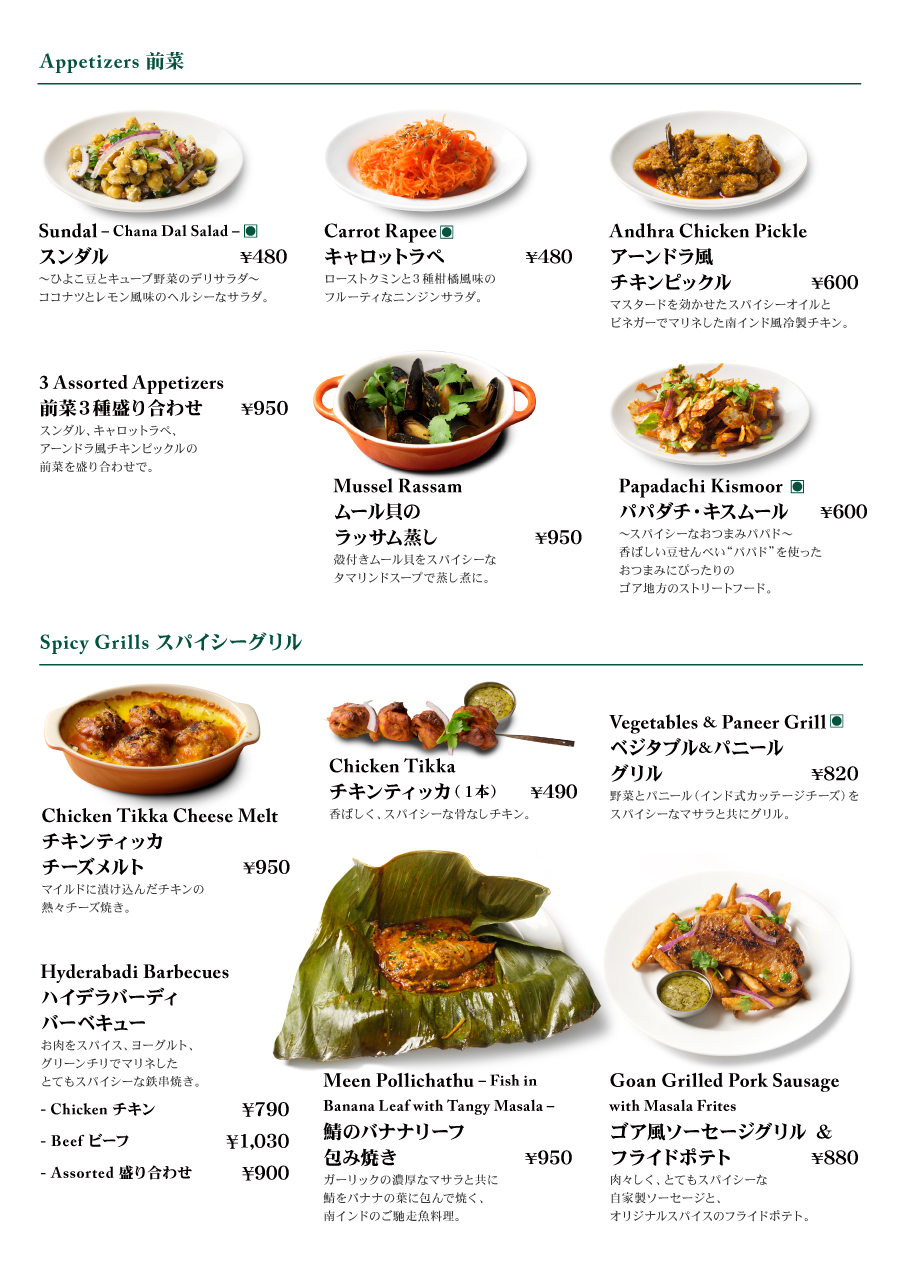 エリックサウスのオーセンティックな南インド料理を気軽に楽しめるコンセプトはそのまま。ほかのエリックサウスと同じく、カレーをはじめ、ホットスナック、グリル料理、様々な南インド料理をご用意しております。