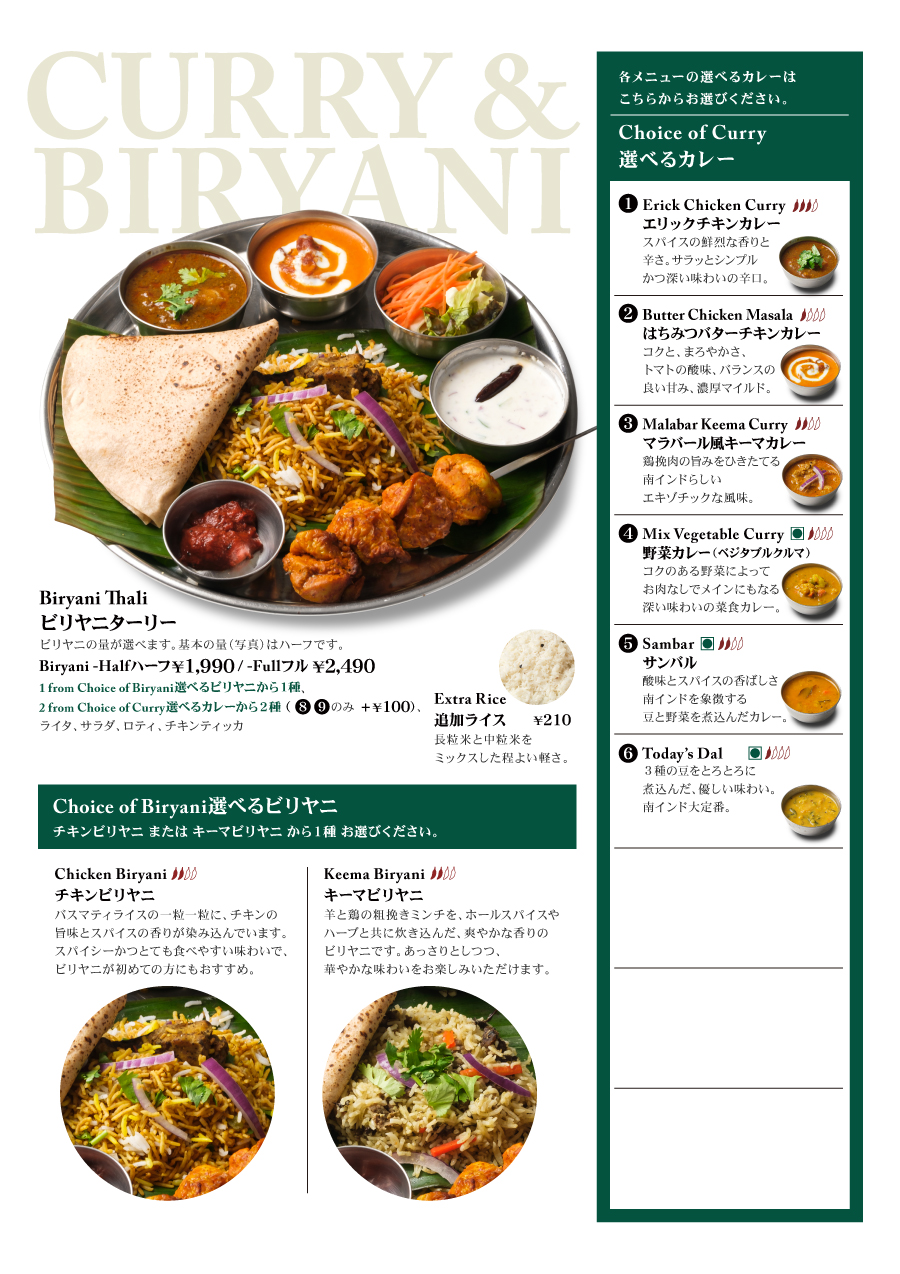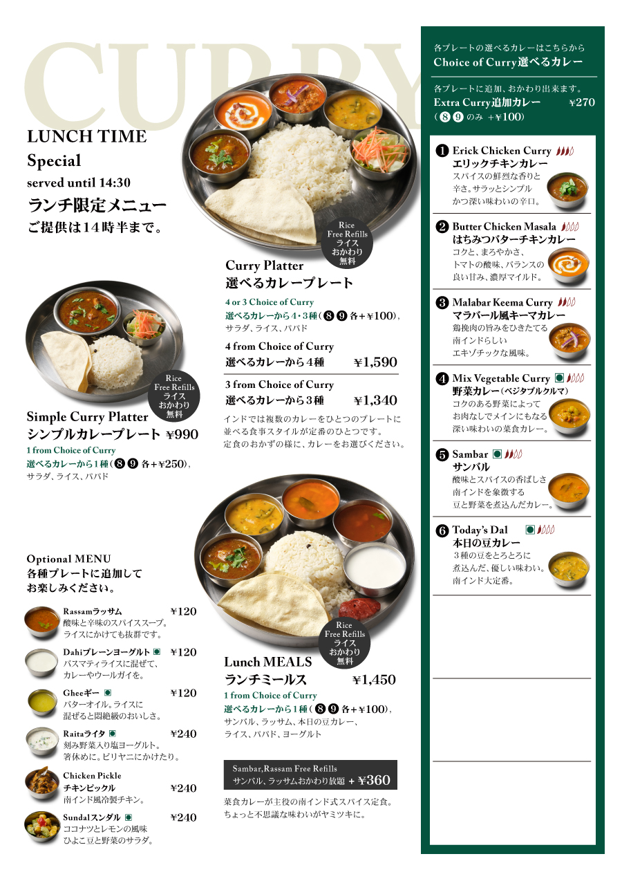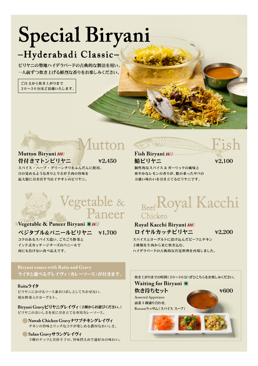 11:30~15:00(ハイデラバーディビリヤニL.O.14:00、L.O. 14:30)