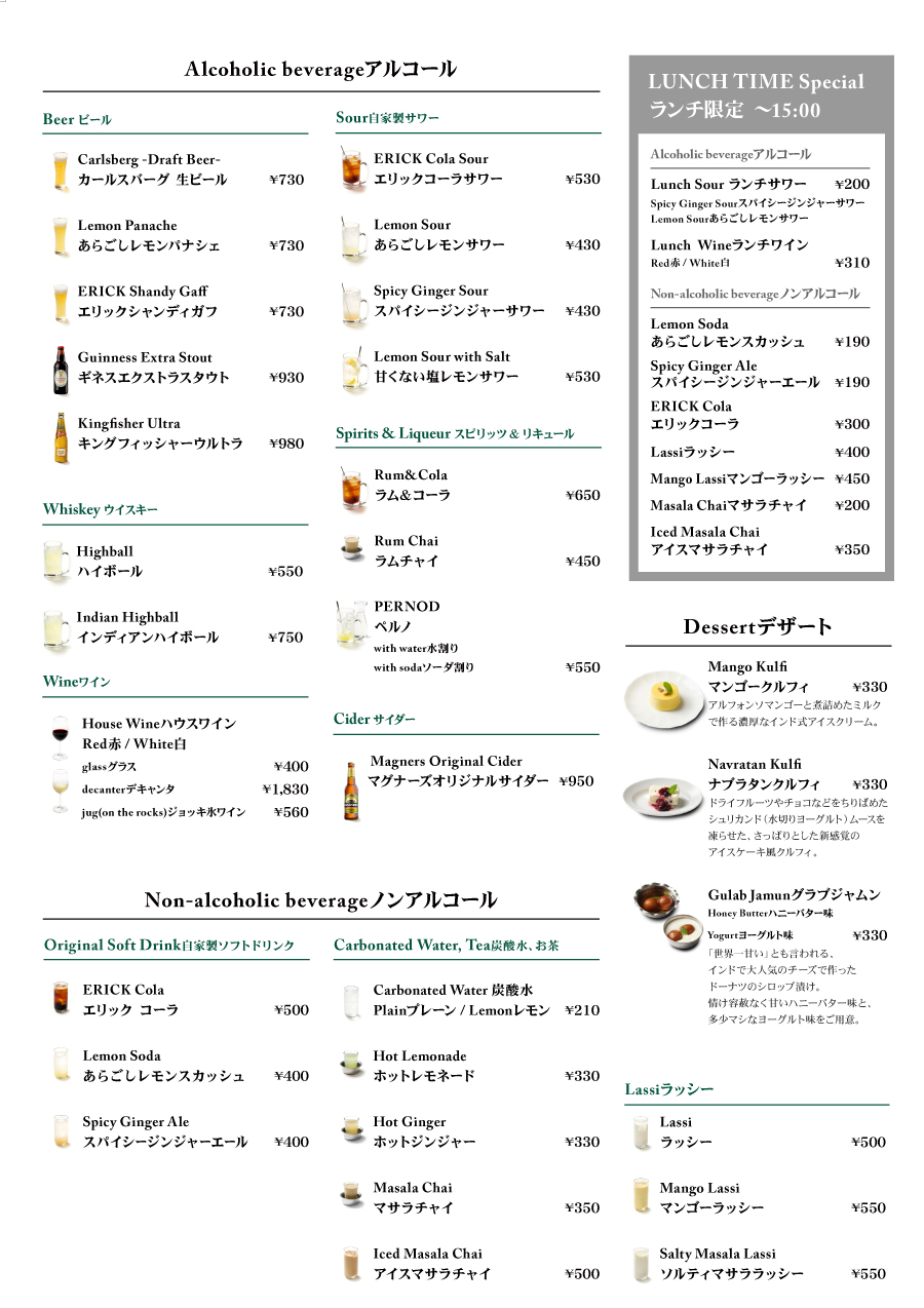 11:30~15:00(ハイデラバーディビリヤニL.O.14:00、L.O. 14:30)