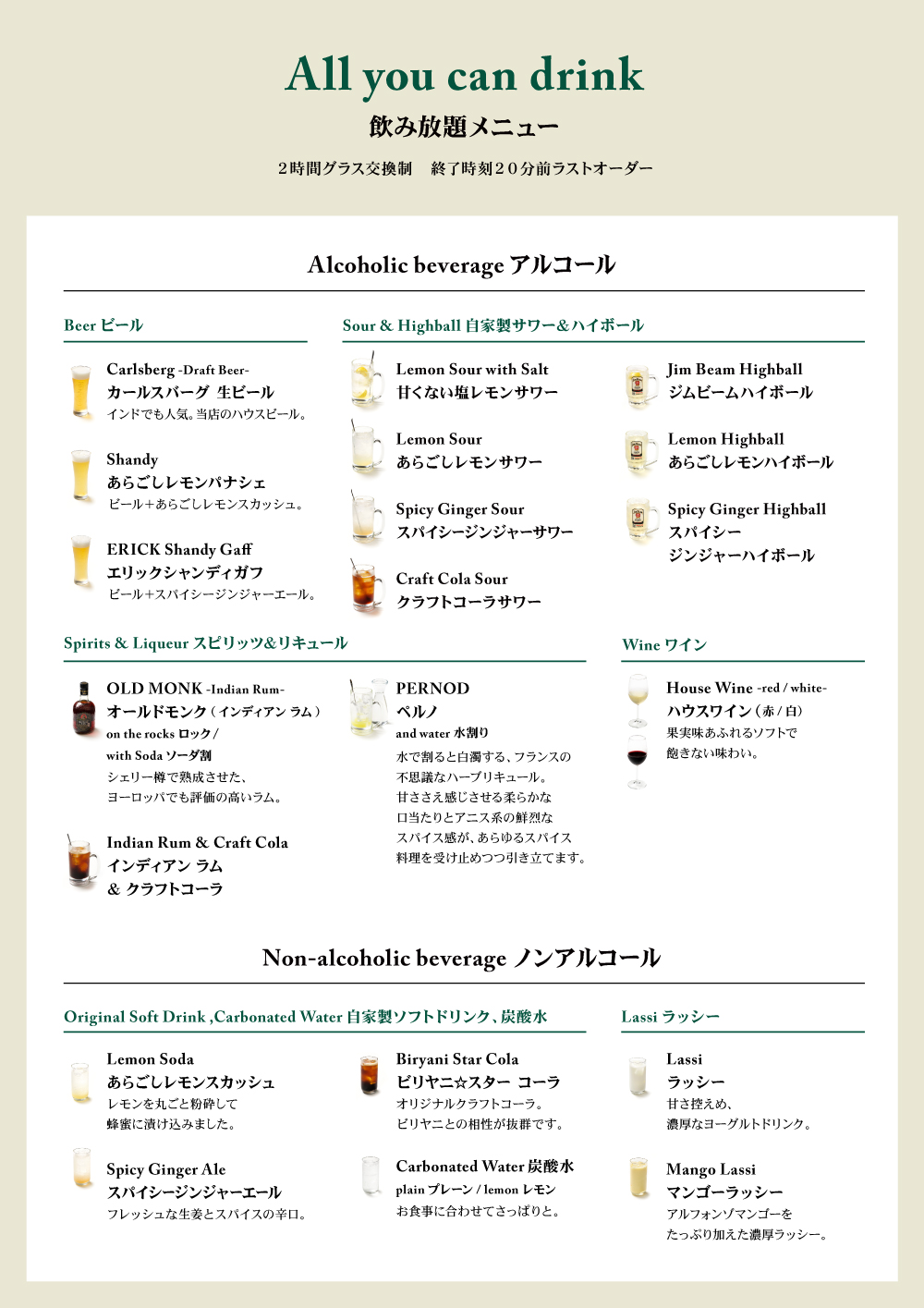 野菜と豆が中心のヘルシーなおいしさが楽しめる、南インドのスパイス定食「ミールス」や、素材の味わいをストレートに生かしたスパイシーな南インドカレー各種、そしてインド式スパイシーパエリア「ビリヤニ」など、本場の鮮烈な味わいを気軽にお楽しみいただけます。