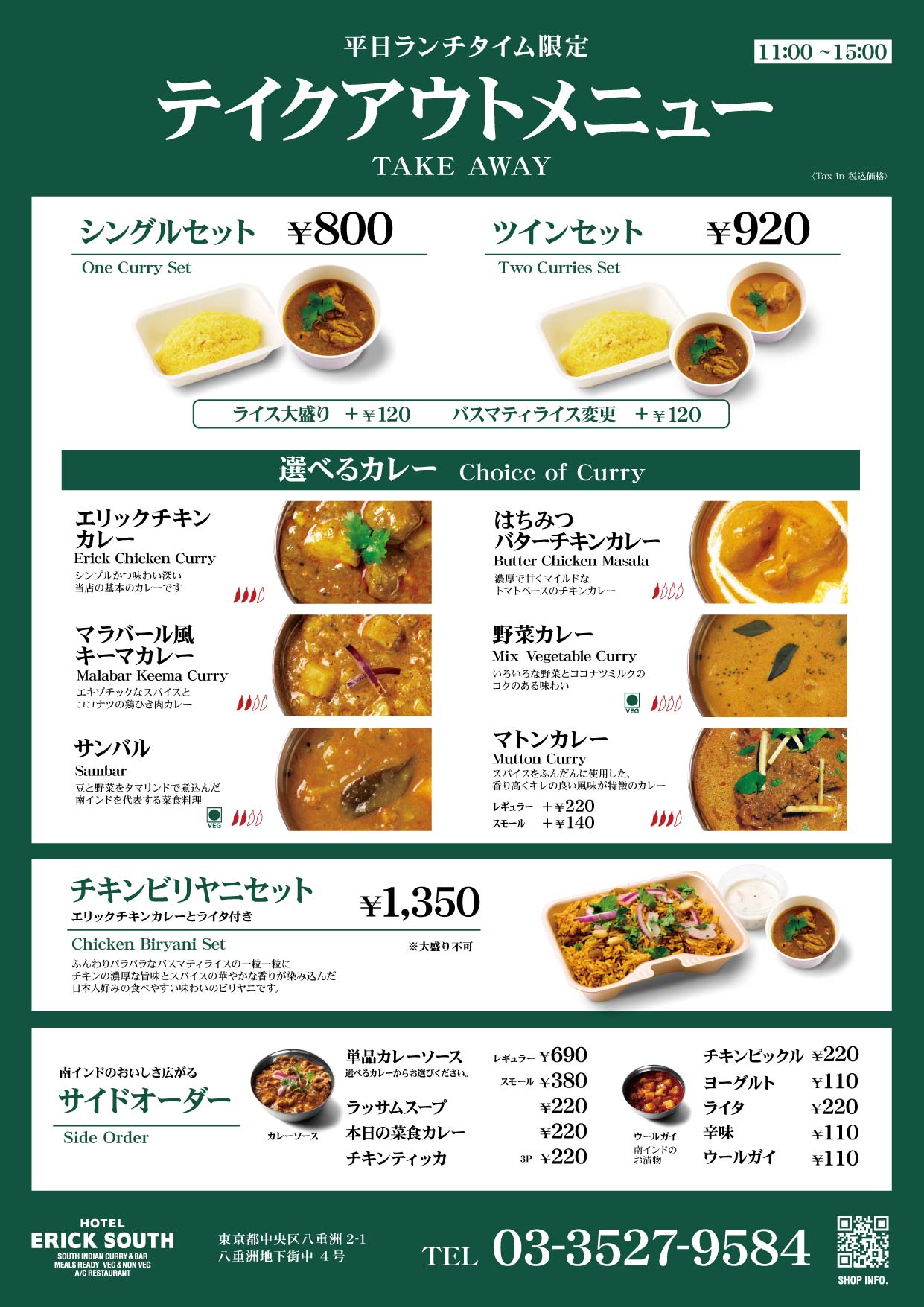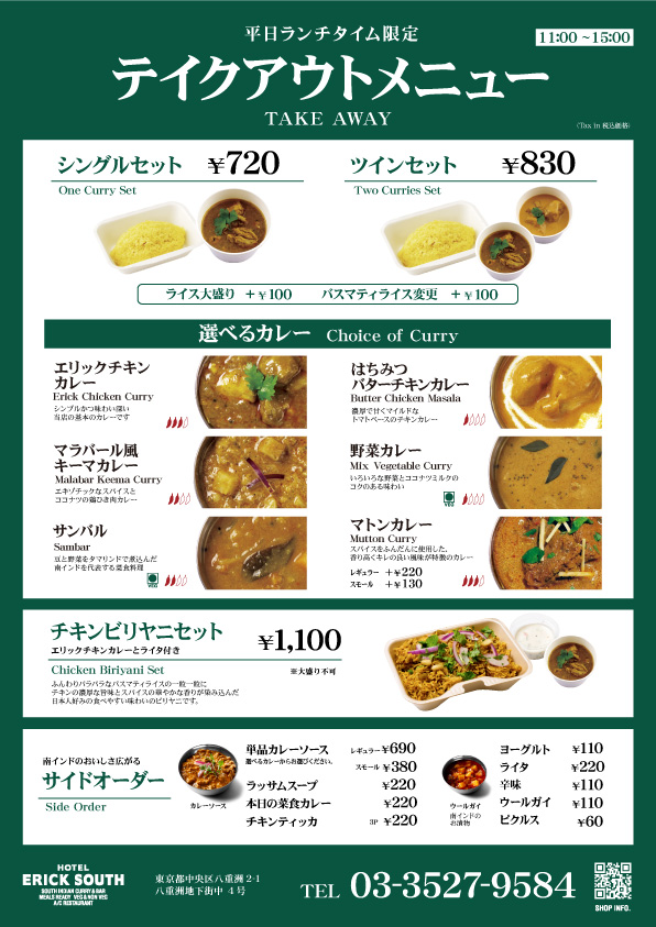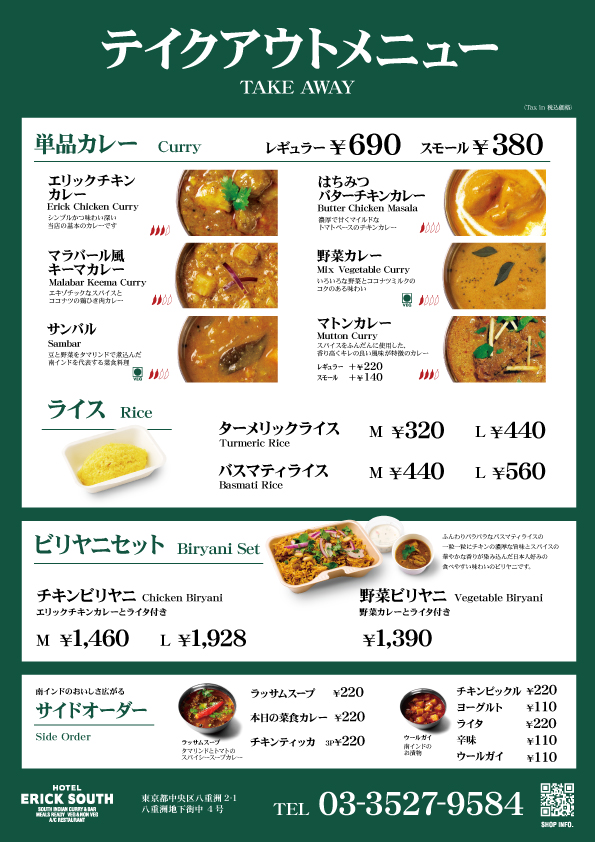 東京駅 / 八重洲地下街 / ランチ / ディナー / テイクアウト / カレー / インド料理 / インドカレー / 南インド料理 / 南インドカレー / ヤエチカ / 京橋駅 / 日本橋 / 丸の内 / ミールス / ビリヤニ /